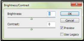 The most familiar and obvious option under Adjustments is the “Brightness/Contrast” window. The Brightness scale will make your image brighter as you pull it to the right (positive number value) and darker as you pull it to the left (negative number value) while the Contrast scale will make your lighter shades lighter and darker shades darker as you pull it to the right and will generally make your picture flatter as you pull it to the left.