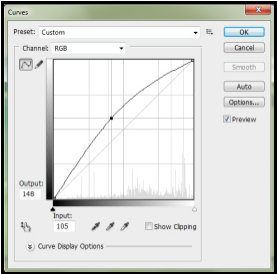 Somewhat similar to Levels is the Curves adjustment. Allowing for a bit more control than Level but a bit trickier sometimes, if you generally pull the curve to the right, your image will emphasize your darker colors while generally pulling the curve to the left will emphasize your lighter colors. This is always a fun one to play with. You pull the curve in different directions, as well, and have two or more points (see that black dot on the curve?) on the curve.