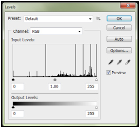 If the Brightness/Contrast adjustments seem to extreme for you, the Levels adjustments allow for a bit more specificity in balancing your image. There are three arrows on the Level scale: you will see that, by default, they rest on the values “0″, “1.00″, and “255″ — these are your Shadows, Midtones, and Highlights values respectively (let’s not worry about the “Output Levels” for now). If you realize that you just need to make your dark colors darker and not change anything else, you can pull your Shadows arrow (the one that starts at “0″) to the right or if you feel your dark colors are perfect and need to make your lighter colors brighter, you can pull your Highlights arrow (the one that starts at “255″) to the left.