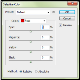 This is definitely different than the rest of the options, but if there are sections of your image that are dominated by a certain hue or color, you can choose to lighten up that color range only. You can choose between Reds, Yellows, Greens, Cyans, Blues, Magentas, Whites, Neutrals, and Blacks. To lighten a color range, you can pull the Black scale (bottom scale) to the left for a negative percentage value, and to make a color range darker, pull the Black scale to the right for a positive percentage value.